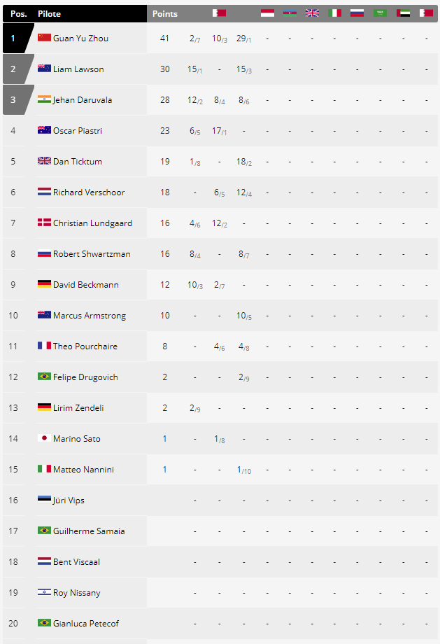 Lawson aura remis le couvert durant la course longue, après un abandon en Sprint 2, percuté par Drugovich alors qu’il luttait pour le podium. Une dernière course terminée à la troisième place, après l’abandon d’Oscar Piastri, et où il aura parfaitement su se défaire d’un Richard Verschoor en délicatesse avec ses pneus pour sécuriser le podium.